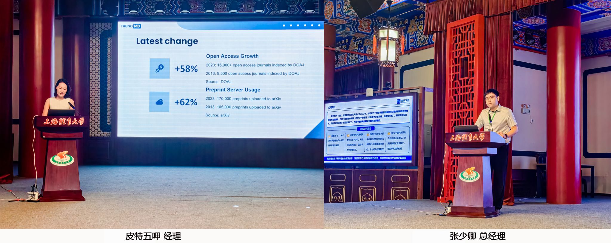 TrendMD中国区代表皮特五呷和智讯学术(北京)信息服务有限公司总经理张少卿则主要聚焦于英文学术期刊的数据化运营和通过开放生态强化期刊国际传播网络。