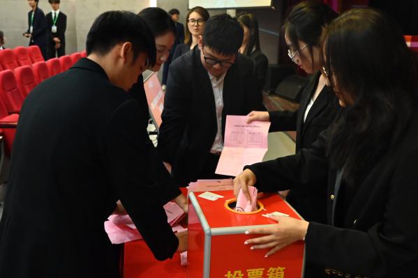 在经过到会代表投票之后,大会宣布第二届学生会主席团成员、第二届学代会常任代表会议代表及第二届研究生会主席团成员、第二届研代会常任代表会议代表的选举结果。大会选举出吴沛恩、房心奇、张鸿原、朱宇宸、黄悦娟5人为第二届学生会主席团成员,李飞雪、汪楠、李佳茗、官雅昕、夏祎晴、钱雯怡、郑卓凡、华雯雯、刘容君、王璐瑶、董建庆、陈晨、张陶怡、吴明珲、王天琪、马赫、陆晓璟、刘景鑫、李若溪19人为第二届学代会常任代表会议代表。选举出冯舒楠、毛钰甜、金让希、史俊怡4人为第二届研究生会主席团成员,吴婷婷、王淦、张馨文、 俞子豪、王恩、秦嘉琪、陶然、王紫惠、丛义松、寇雅涵、蔡欣江、申恩慧12人为第二届研代会常任代表会议代表。