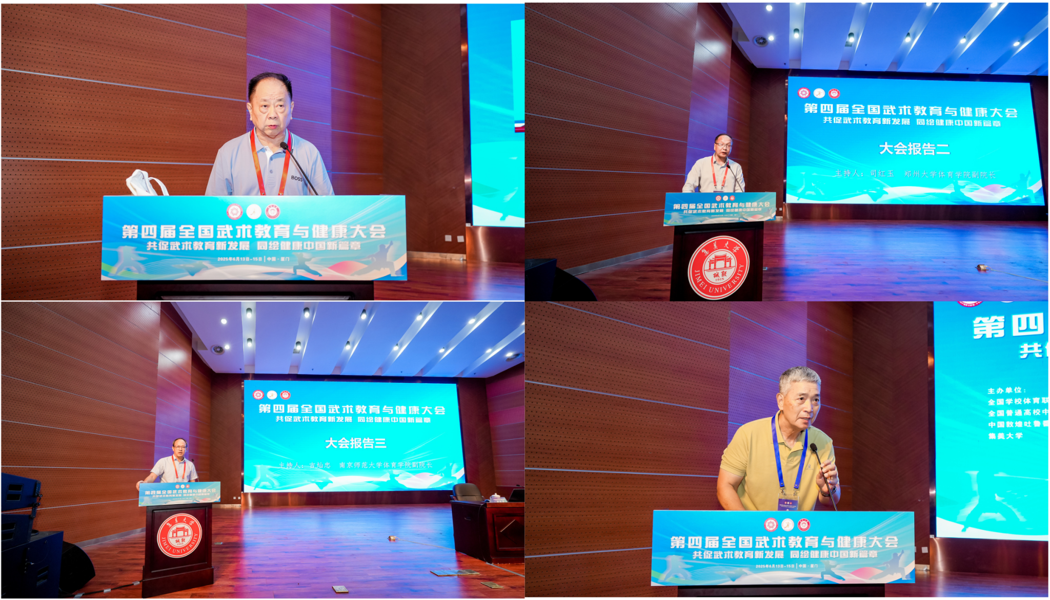 本网讯 为深入学习贯彻全国教育大会精神和习近平总书记关于教育的重要论述,落实《“健康中国2030”规划纲要》,推动中华优秀传统文化创造性转化、创新性发展,2025年6月13日至15日,由全国学校体育联盟(中华武术)、集美大学、全国普通高校中华优秀传统文化传承基地(武术)、中国敦煌吐鲁番学会体育卫生研究会主办,集美大学体育学院承办的“第四届全国武术教育与健康大会”在集美大学召开。本次大会以“共促武术教育新发展 同绘健康中国新篇章”为主题,设置大会报告、专题报告、墙报交流、优秀案例交流、公开课展示等环节,吸引了来自全国高校、科研院所、相关部门的180余名专家、学者、武术教育工作者参会。