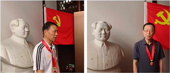 参观结束后,退休党委在现场举行了“光荣在党50年” 纪念章颁发仪式。今年共有八位老党员获此殊荣,他们是王於竞、徐金山、陆解娣、黄顺章、邬照友、高根龙、黄瑞英、廖萍。专职组织员沈志华主持纪念章颁发仪式,退休党委书记李芳为他们一一戴上纪念章,纪念章在胸前熠熠生辉,她承载着党组织对老党员忠诚奉献的崇高敬意。王於竞、徐金山代表获颁纪念章的老党员激动地表示,这份荣誉是党对我们几十年坚定信仰的肯定,我们不忘党组织对我们的教育和培养,要永远听党话跟党走。今后将继续保持党员本色,退休永不褪色,永远和党保持一致。