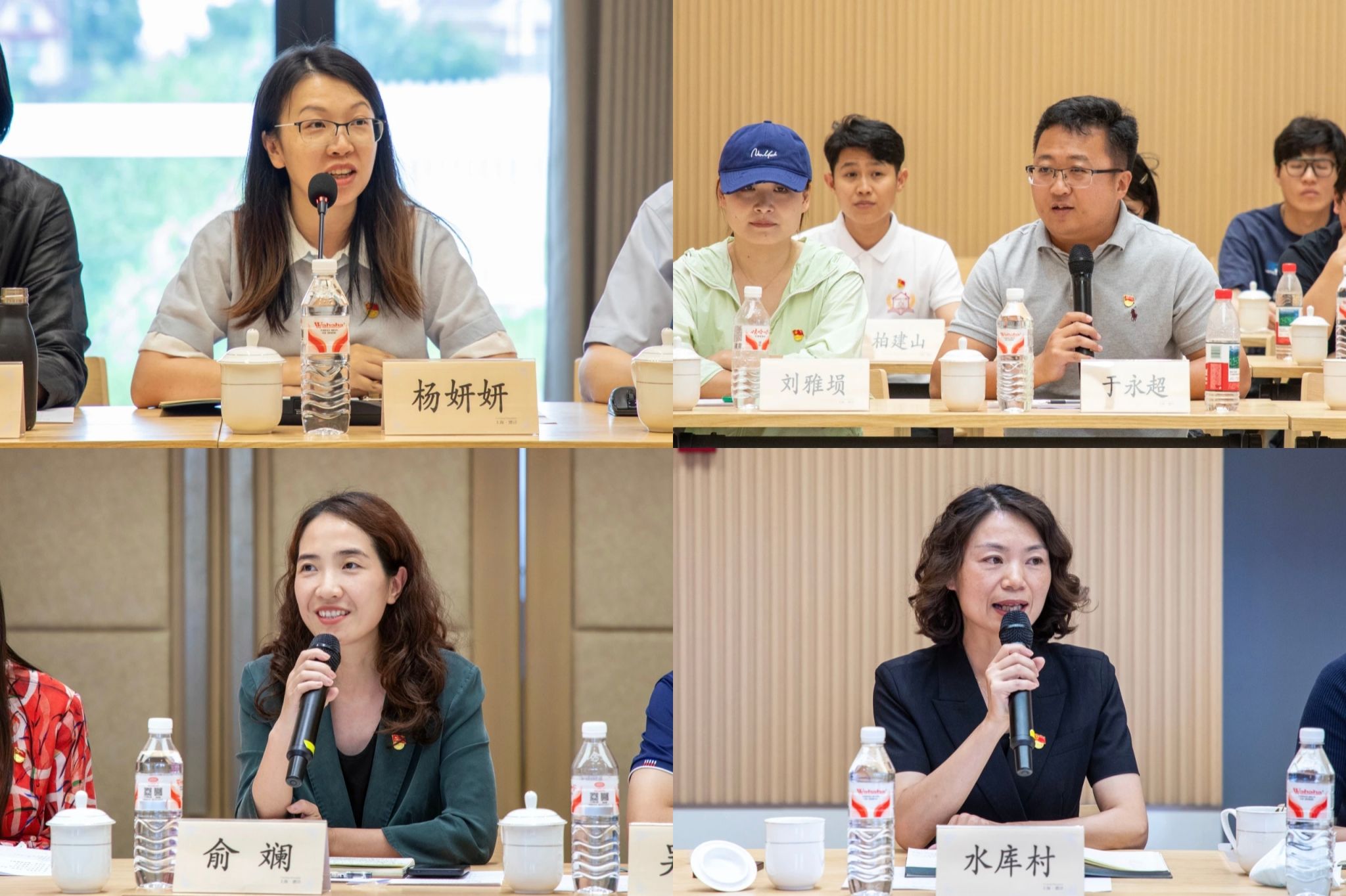 在交流座谈环节,SUNBET申搏党委组织部副部长杨妍妍、马克思主义学院“大思政课”教研室主任于永超、漕泾镇党委委员俞斓、漕泾水库村党总支副书记费春花围绕党建联建、大思政课基地共建、校地合作、文旅体融合发展等内容展开交流。