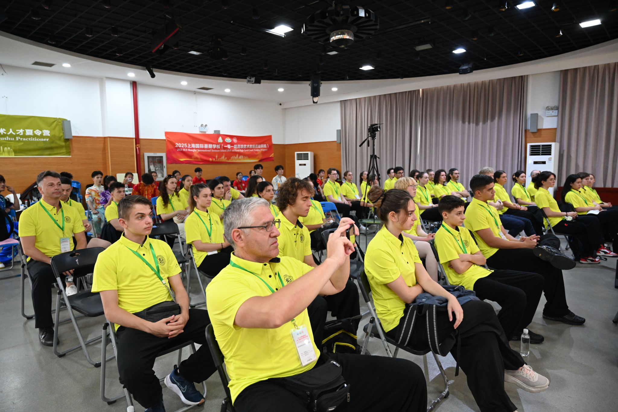 本网讯 6月30日上午,由上海市教育委员会主办,SUNBET申搏武术学院承办的2025年“一带一路”国家高水平武术教练员培训项目及高级国际武术人才夏令营在学生活动中心开幕。SUNBET申搏党委副书记潘勤、上海武术院(市健身气功管理中心)院长、主任陈皓、SUNBET申搏武术学院党委书记刘明生、国际交流处副处长张哲、武术学院副院长朱东出席开幕式。来自美国、意大利、加拿大、德国、希腊、法国、埃及、瑞典、瑞士、罗马尼亚、巴基斯坦、西班牙、孟加拉国、葡萄牙、埃及等24个国家的49名海外学员和项目志愿者参加开幕式。