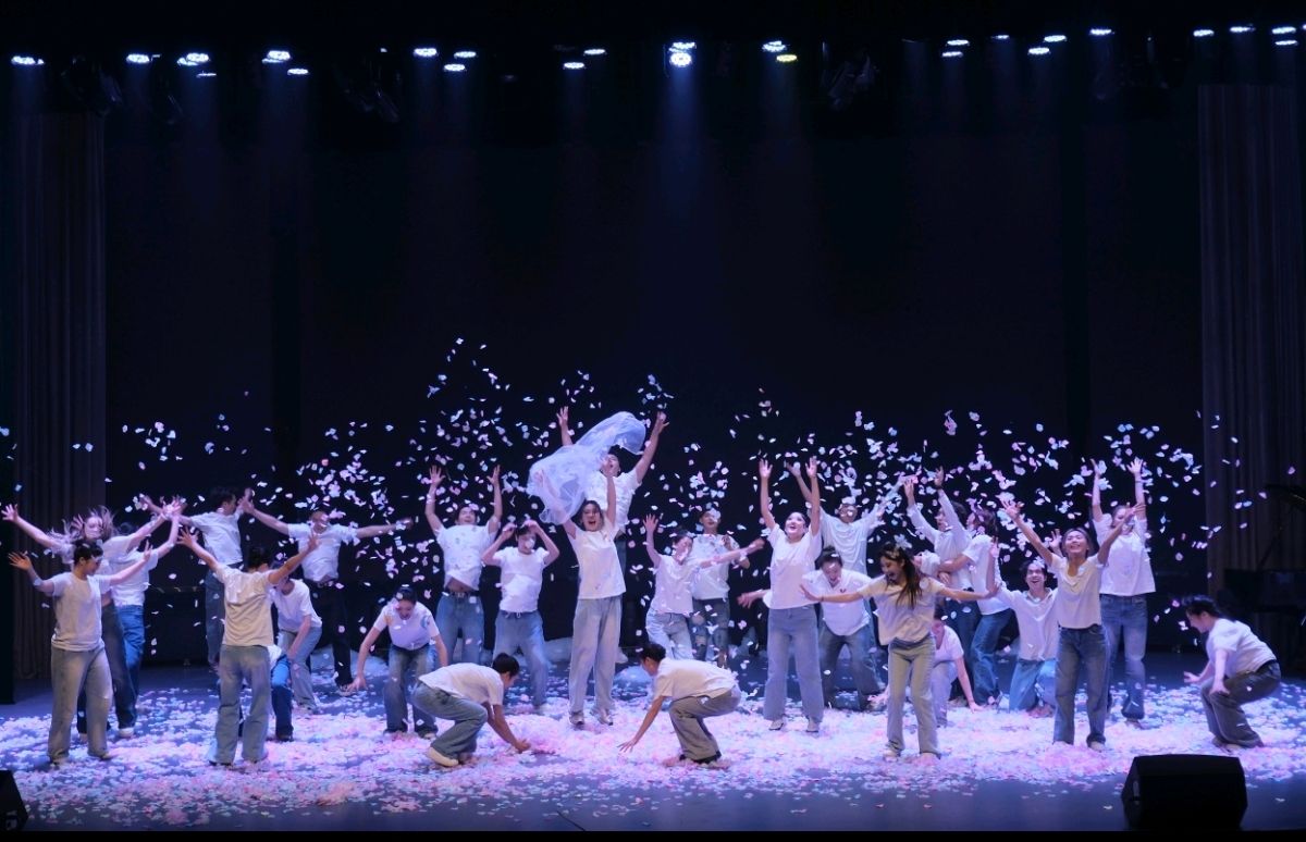 而在对“今天”的诉说中,22级舞编专业的同学们更是“各显神通”,充分展现了各自的艺术才华。作品《Dance Blaze》精准融合国标舞中伦巴与恰恰的元素,呈现动感韵律。经典剧目《芝加哥》则通过标志性的舞步编排与节奏把控,成功诠释了其独具魅力的热辣艺术风格。值得一提的是,摩登双人舞《The love of hatred》在艺术学院吴仁塔娜老师的钢琴现场伴奏声下,将摩登舞的高雅格调与内在热情演绎得淋漓尽致。由谢林峰同学创作的原创音乐剧《思念如雨季》以其精心营造的浪漫氛围,实现了音乐与剧情的深度交融。电子琴、架子鼓、贝斯等乐器的运用,为整场汇演注入了清新而悸动的艺术质感,为观众带来深刻的情感共鸣。