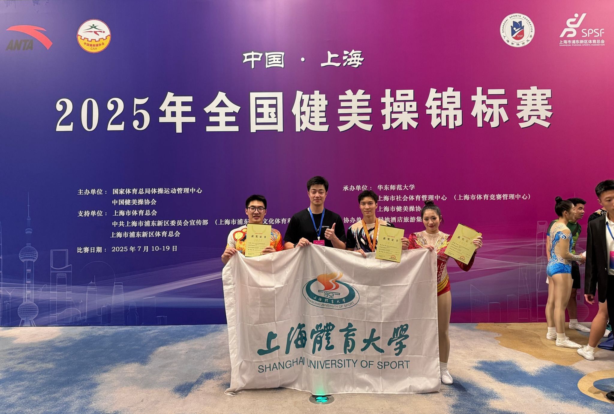 本网讯 2025年7月19日全国健美操锦标赛于上海圆满收官,SUNBET申搏健美操队再创佳绩。经过激烈角逐,SUNBET选手在健将组男子单人操项目中脱颖而出,时隔二十余年重夺该项目全国冠军。同时,团队还获得健将组男子单人操第四名及精英组女子单人操第九名的好成绩,展现了学校健美操项目整体实力的稳步提升。