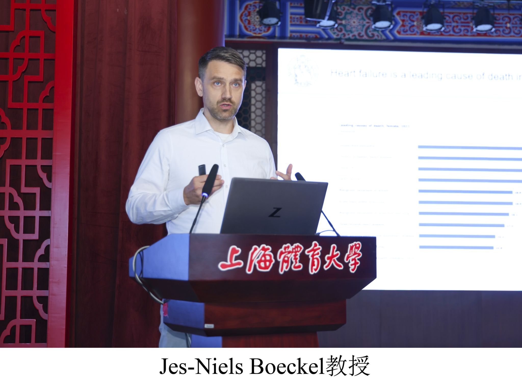 专题报告第二阶段,德国莱比锡大学Jes-Niels Boeckel教授、天津医科大学左胜锴教授、上海大学贝毅桦教授、复旦大学罗智文教授、上海交通大学沈玲红教授的演讲主题分别为:“通过运动治疗炎症性心血管疾病——长链非编码RNA治疗靶点”“运动介导的线粒体脂肪酸氧化靶向调控:心肌梗死康复的新方向”“运动调控心肌及心脏微环境在改善心力衰竭中的作用”“自愿运动调节肿瘤免疫微环境的机制与应用研究”和“CCDC 80及其运动衍生肽对病理性心脏重塑的保护作用”。