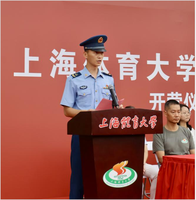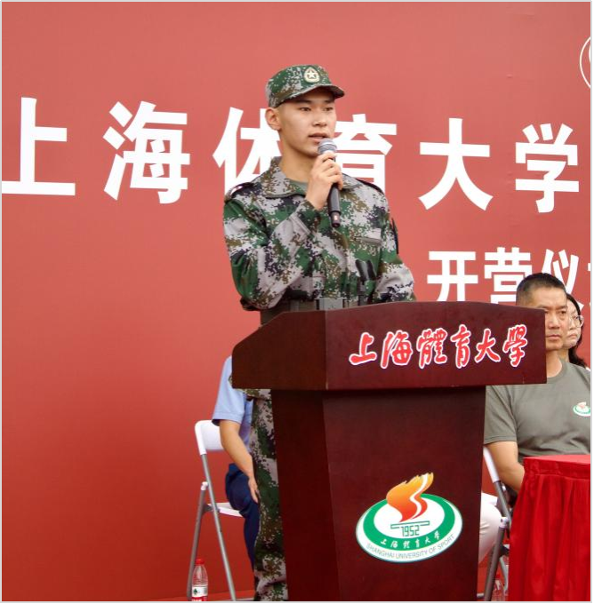 参训教官代表王超同志上台表态:坚持严格自律、科学施训、安全至上,将以良好军人形象带领同学们锤炼坚韧品质。随后,来自体育教育学院2025级的马鹏浩同学代表参训新生发言并承诺,将服从命令、苦练本领,把新时代青年“强国有我”的誓言转化为烈日下的坚持与汗水。