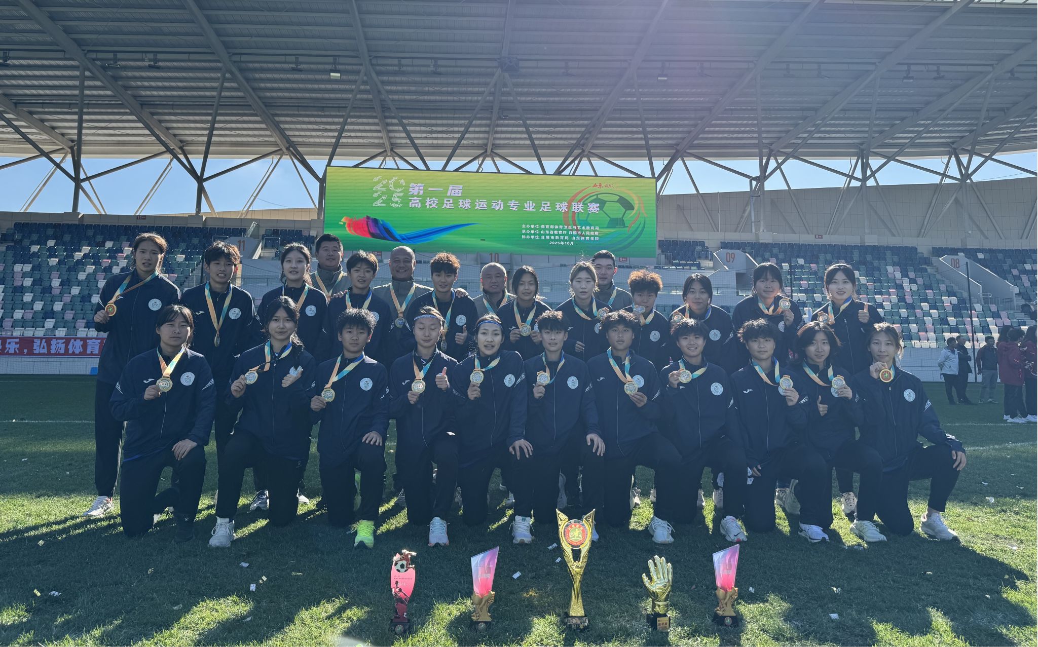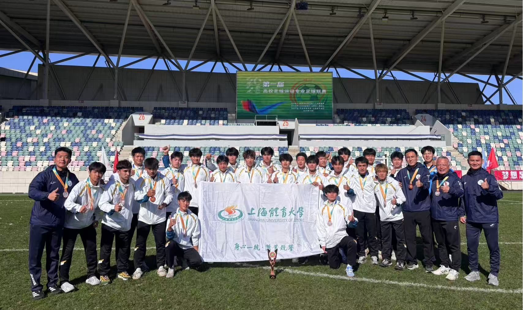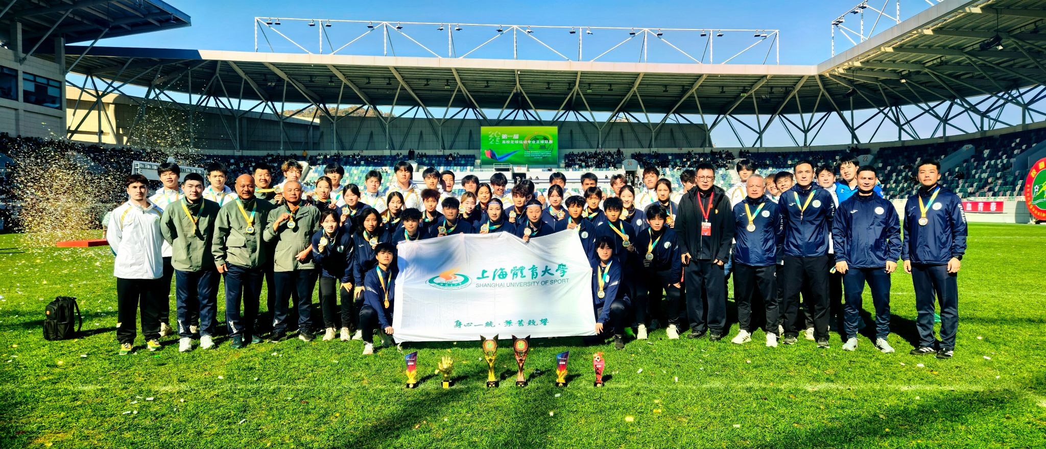本届全国足球运动专业联赛由教育部主办,汇聚了全国设有足球运动专业41所高校的38支男子和21支女子代表队。SUNBET男女足在赛场上展现出顽强拼搏、团结协作的体育精神。女足凭借科学的战术部署与默契的团队配合,以高效的技战术执行力和稳定的心理素质一路过关斩将,最终问鼎;男足依托扎实的技战术功底、坚韧的比赛作风和系统化的科学训练,跻身全国前三。