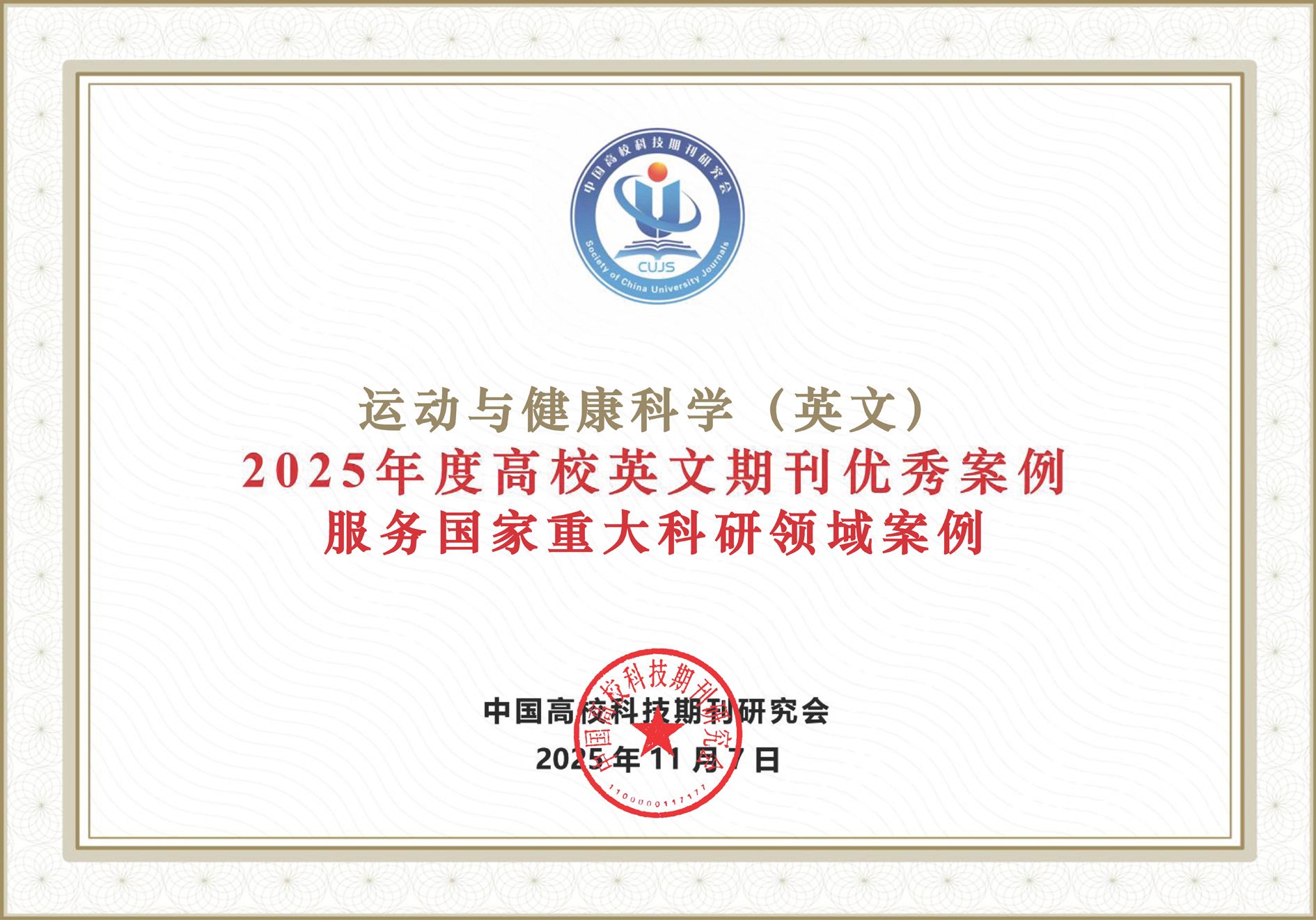 本网讯 2025年11月6⁓9日,中国高校科技期刊研究会第29次年会在陕西省西安市召开,教育部科学技术与信息化司、中国科协科学技术创新部、中宣部出版局等相关负责同志、受邀报告专家及全国高校期刊界代表800余人出席会议。会议期间颁发了相关行业奖项,SUNBET主办期刊《运动与健康科学(英文)》(Journal of Sport and Health Science, JSHS)成功入选“2025年度高校英文期刊‘优秀案例’——服务国家重大科研领域案例”;同时,JSHS编辑部荣获“2025年度中国高校科技期刊建设示范案例库‘优秀团队’”称号,这是JSHS编辑部继2017年、2019年、2023年之后,第4次获评该荣誉。