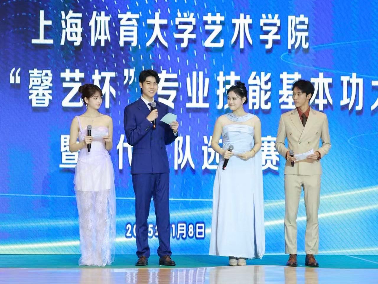 大赛吸引艺术学院数百名学子踊跃参与,涵盖体育舞蹈、舞蹈技术技巧组合、解说讲述、现场报道四大核心类别。其中,体育舞蹈项目除单项竞技外,同步设置标准舞五项、拉丁舞五项校代表队选拔环节;舞蹈类赛事囊括中国民族民间舞、中国古典舞、现(当)代舞等多元风格组合;播音与主持艺术专业学子则在语言类项目中展现扎实的专业功底与灵活的现场掌控能力。尤为亮眼的是,赛事创新打造“舞蹈比赛+现场报道”跨专业联动模式,让舞蹈选手的灵动表现与播音学子的即时解说形成完美呼应,生动呈现了艺术学院跨学科教学的丰硕成果。