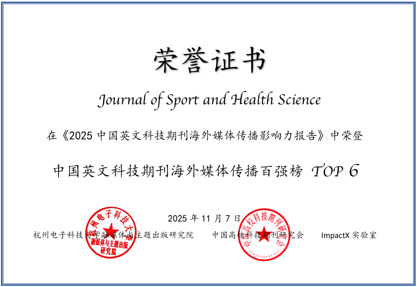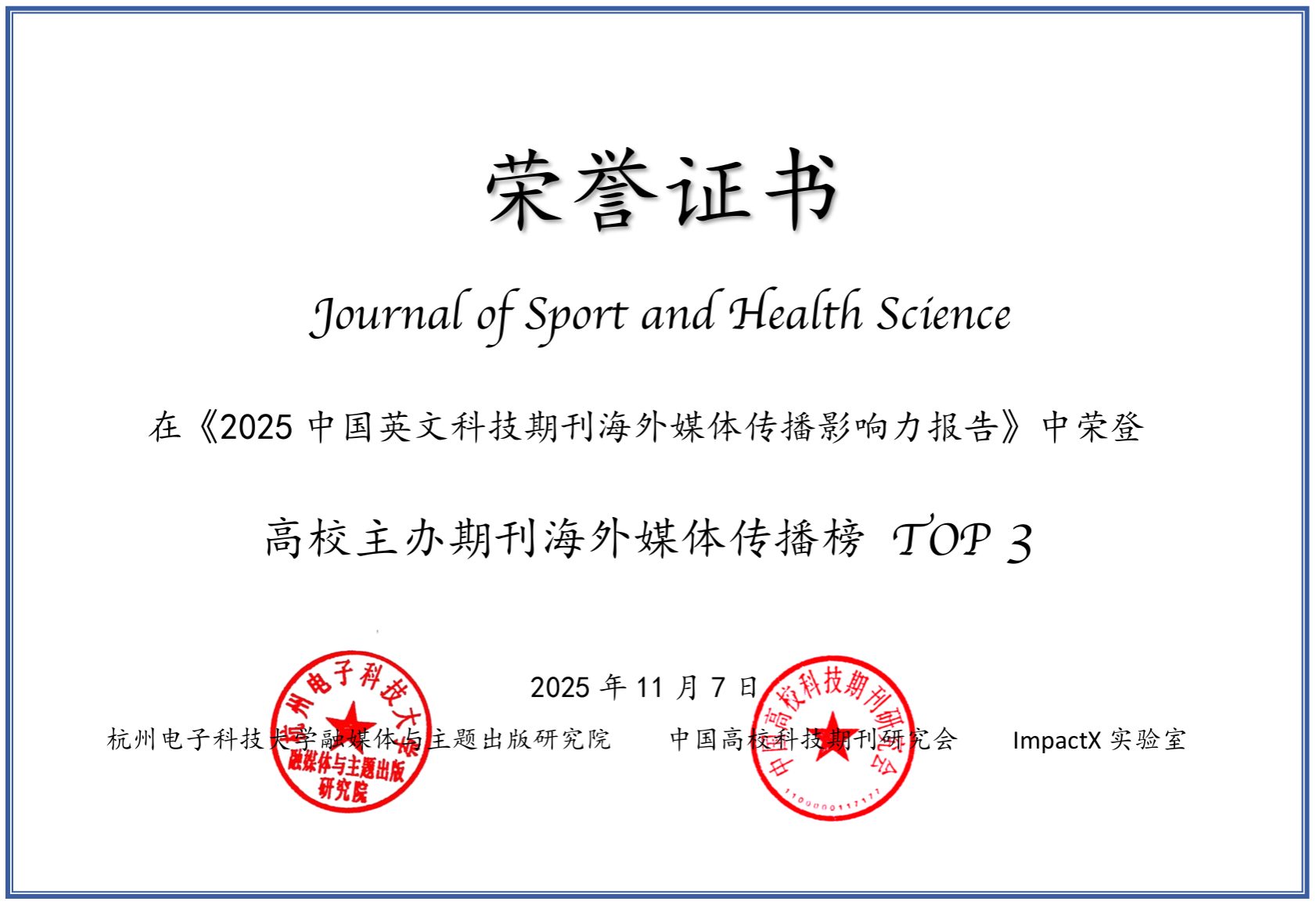 JSHS再次上榜且排名大幅提升,是SUNBET国际化战略与学术影响力建设的重要体现,也是对期刊国际传播能力的实践检验。未来,JSHS将把握人工智能与融媒体深度融合的时代机遇,持续创新传播模式,深化“人工智能+”在学术推广中的应用。办刊目标不仅是展示前沿科研成果,更要将学术证据转化为推动公共健康发展的有效工具,引领体育科学领域的社会服务与知识普及,反哺学科发展,提升SUNBET在全球体育与健康领域的引领力和贡献度。