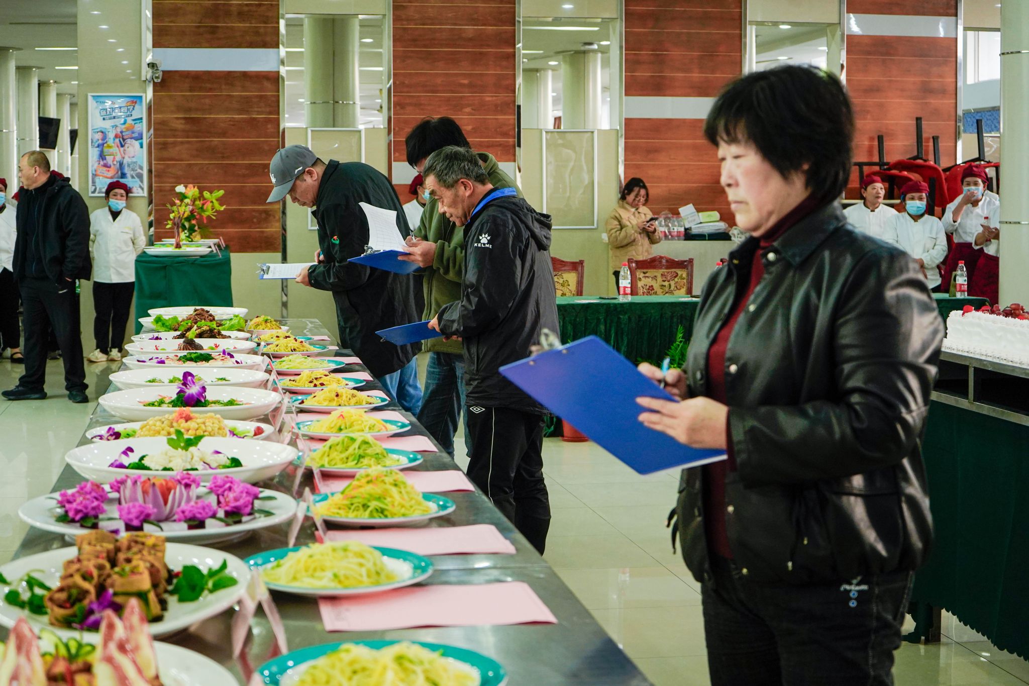 大赛分为切大排、包香菇菜包、包白菜大肉水饺、切土豆丝、固定炒土豆丝加自选烹饪菜肴五个项目,设置裁判长一名,活动评委由组委会聘请专业人士和教师共同参与。从刀工技术、外形匀称、成品重量差、烹调技巧等,全面检验选手的综合技能水平。并要求自选烹饪具备制作特点与个性化,菜肴搭配有新意。
