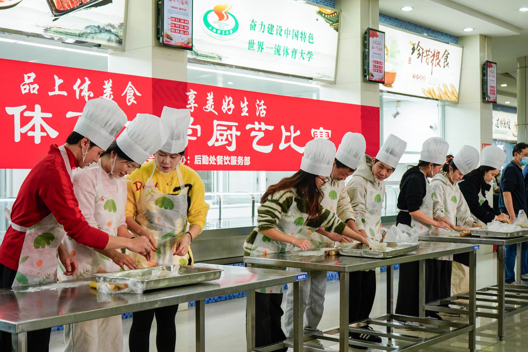 党委副书记潘勤为活动致辞。后勤处依托其服务理念,打造了契合体育院校特色的劳动教育课程,让同学们在体验传统技艺中感受文化之美与劳动价值,实现“食育”与育人深度融合。本次比赛既是技能的展示,也是餐饮人对师生的承诺。餐饮人要在比拼中展风采,在交流中促提升,为建设更加温暖、更加专业的上体后勤继续贡献力量。