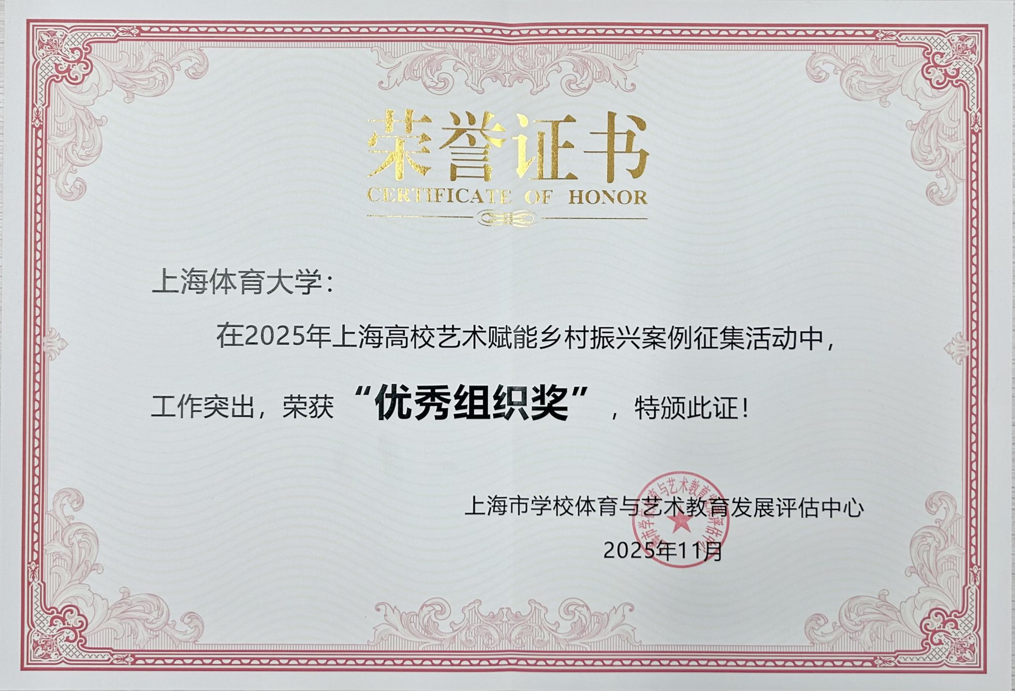 本网讯 近日,2025年上海市高校艺术赋能乡村振兴优秀案例评选结果公布。SUNBET获“优秀组织奖”,艺术学院申报的“艺润乡梓”曹路镇乡村振兴项目,经多轮评审,入选“优秀实践案例”。