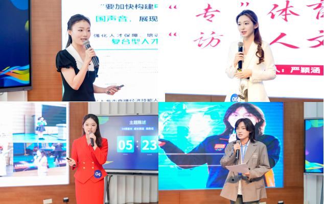 下午场赛事聚焦成长赛道,14位选手依次登台,围绕职业目标、行业发展、人职匹配、行动成果及未来规划等多个维度,生动讲述了各自为追逐职业理想而不懈奋斗的心路历程。面对社会与科技的蓬勃发展浪潮,选手们在实践中不断校准职业航向。他们中,有的立志成为全媒体体育主播,愿以执声为笔,让中国体育故事响彻世界;有的矢志成为足球教练员,希望用智能体育之光照亮青少年足球之路;亦有选手期待成为国际组织项目运行与策划发展官员,立志于世界舞台讲好中国故事。选手们将扎实的专业知识与丰富的实践经验紧密结合,深刻映射出新一代学子如何将个人理想融入时代发展洪流,在科技进步与行业变革浪潮中主动调整自我、大胆探索前行的青春风采。