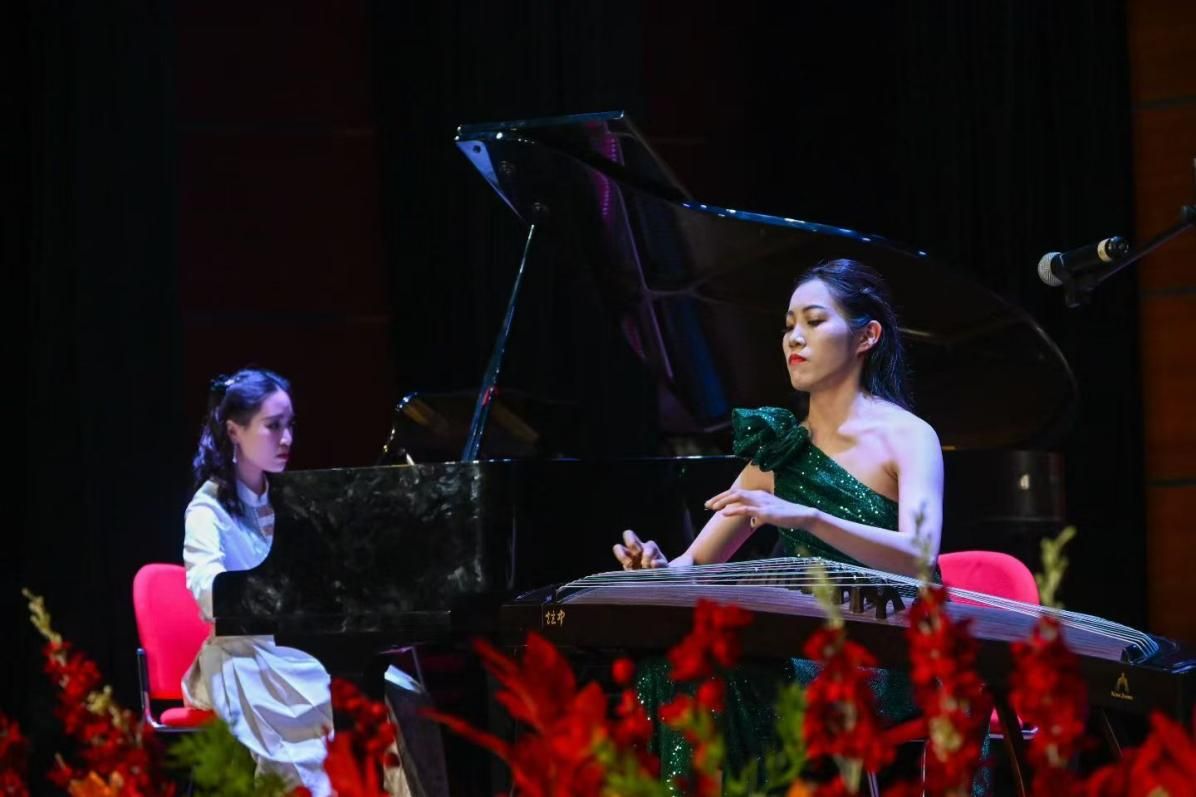 “跃·星河”篇章实现艺术升华与情感共鸣。架子鼓独奏《POP/STARS》迸发青春活力;上海音乐学院特邀嘉宾演绎的钢琴与古筝合奏《千年大运河》、小提琴独奏《骏马唱歌》带来专业级的艺术享受;钢琴独奏《一步之遥》经典重现,优雅流转;最终,全场合唱《彩虹》《我爱你中国》融入舞蹈表演,以温暖与赤诚为音乐会画上圆满句号。