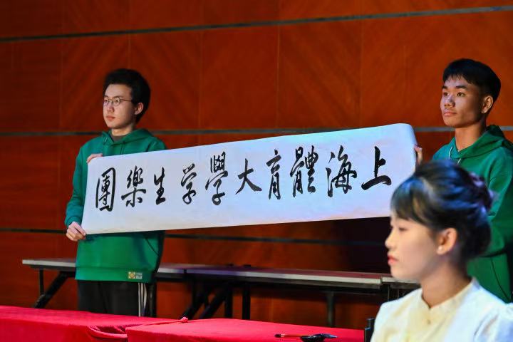 “竞·潮音”篇章聚焦青春表达与现代融合。管乐团带来的《City of Stars》《Dead Men Tell No Tales》在浪漫与激昂之间自如切换;中西合璧的《梁祝》展现乐器对话的魅力;首次尝试的阿卡贝拉版《Try Everything》以人声节奏点燃全场;《My Heart Will Go On》管弦合奏复刻经典感动;《我的祖国》与《乐韵墨香》则融合民乐与现场书法表演,在乐韵墨香中为师生送上新年祝福。