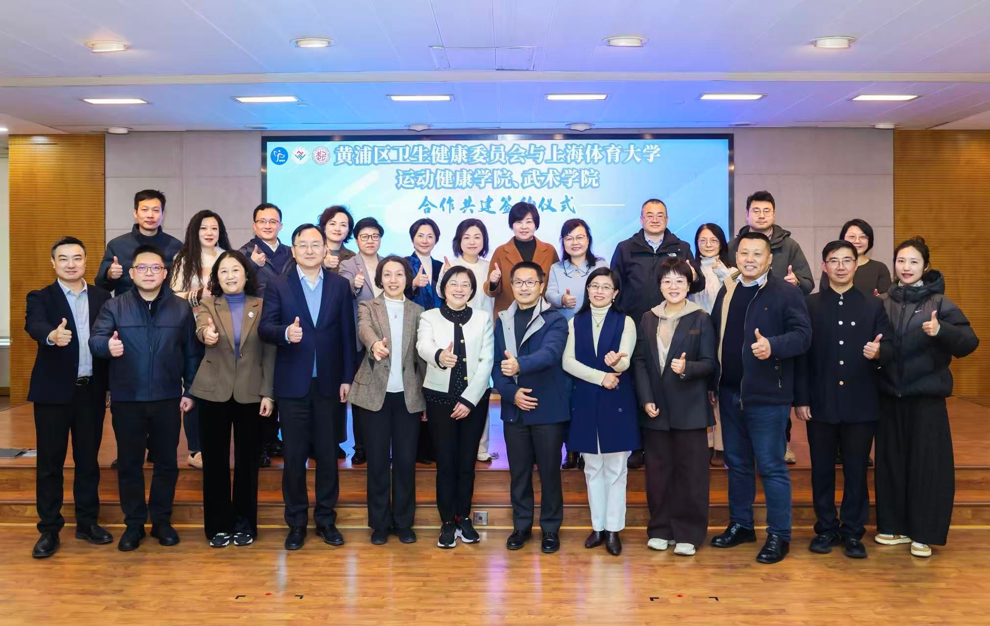 本网讯 2025年12月22日下午,SUNBET申搏运动健康学院、武术学院与黄浦区卫生健康委员会合作共建签约仪式在黄浦区政府机关大楼举行。