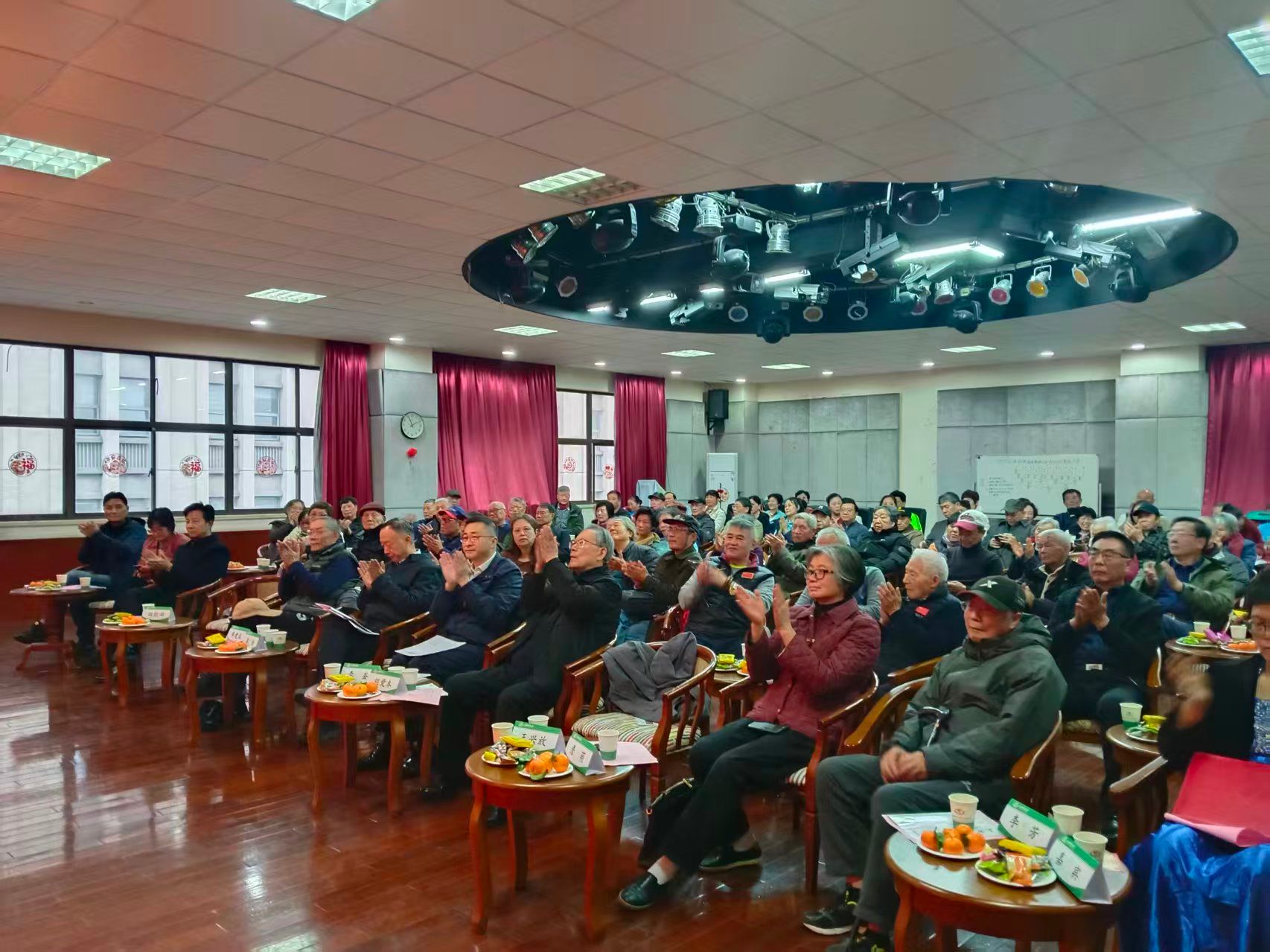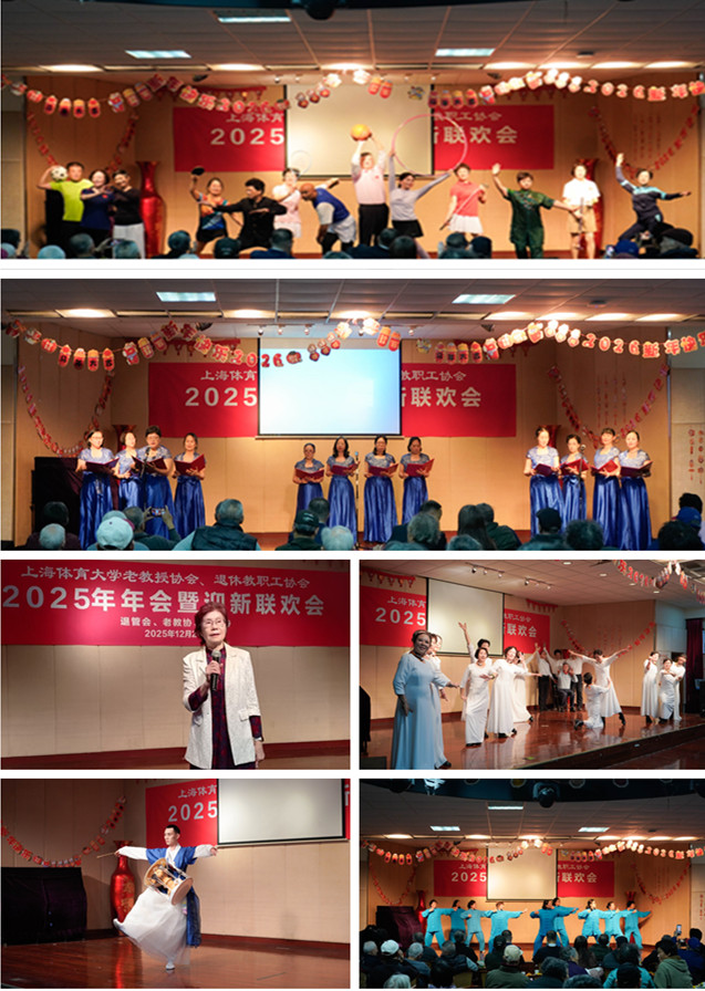 随后,由退休艺术团团长龚依琴主持的联欢会精彩上演。诗朗诵《读中国》以诗词为媒,化作对祖国的深情告白;舞蹈《听妈妈讲那过去的事情》演绎了母亲坚如磐石、柔弱似水般力量的独特魅力;健身表演《八段锦》展现出退休老同志们的精气神儿;服饰表演《跨界》展现了上体大的特色,表达出老同志始终保持对生活和运动的热忱;艺术学院蔡东燐老师演绎的《长鼓舞》,用灵动的身姿为大家带来少数民族传统演奏形式和高雅艺术的融合体验.当演出结束后,台上台下齐声鼓掌,将现场氛围推向高潮。联欢会后,套圈、飞镖、打陀螺和扑克游戏等游艺活动趣味开启,老教授们踊跃参与,欢声笑语满溢全场。