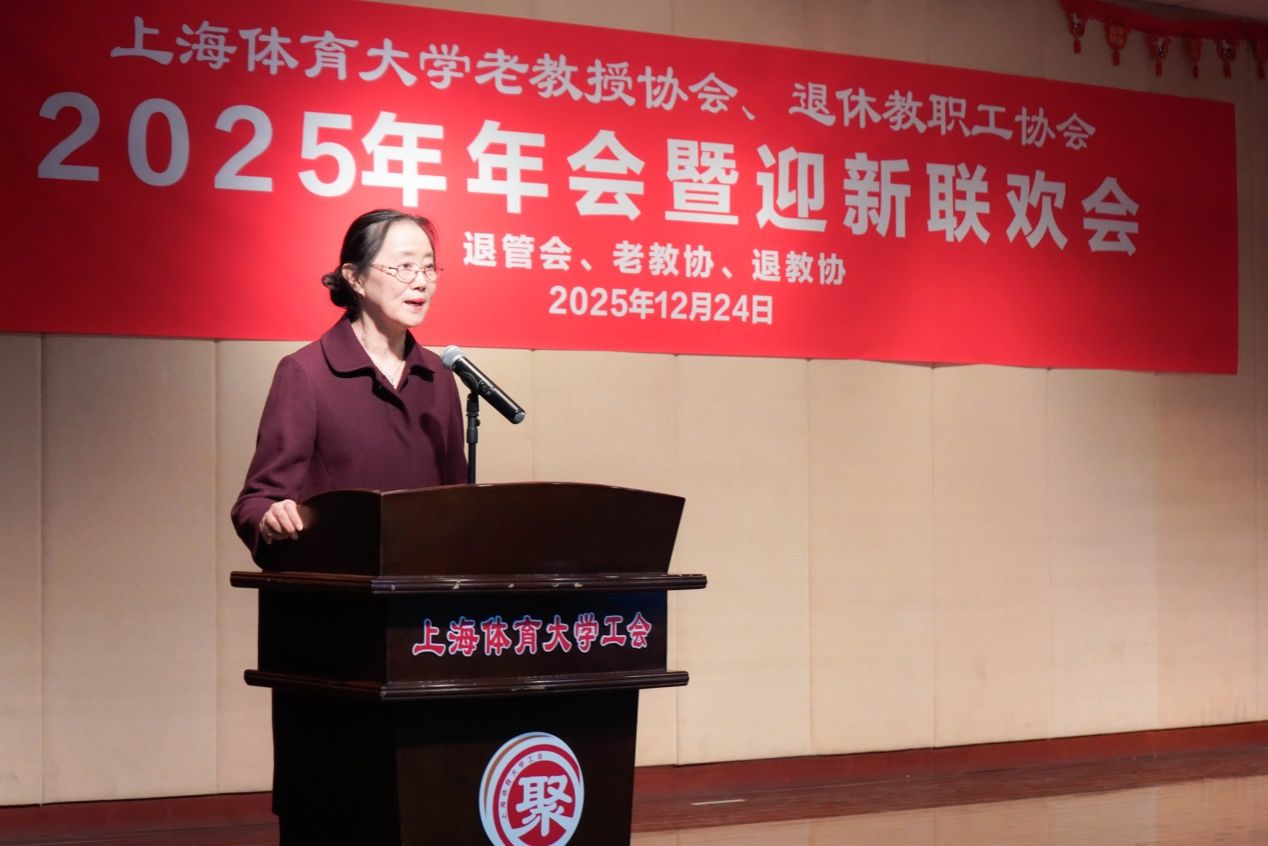 李崟作校情通报。他首先代表学校对始终关心、支持学校建设发展的老教授们致以崇高的敬意和衷心的感谢,充分肯定协会一年来的亮眼成绩。随后在校情通报中,李书记从党建引领、思政铸魂、育人改革、科教融汇、社会服务、对外开放六方面,全面介绍学校深化综合改革,在竞技体育、科研转化、国际交流、国际国内重大赛事等领域取得的成绩。学校在学科建设、体育+AI、兴奋剂检测实验室等领域取得的突破。他表示,成绩的取得,离不开广大老教授们的支持。展望未来,学校将进一步深化改革,实现创新发展、内涵发展、特色发展、融合发展和深度融合,推进世界一流体育大学建设。他还表示,过去一年,学校加强对离退休老同志的关心关爱和服务保障,努力让广大离退休老同志老有所养、老有所乐、老有所为。并再次由衷感谢老同志们始终心系学校发展,在教学督导等工作中持续发光发热。期待老同志为学校改革发展建言献策,共同推动学校事业再上新台阶。