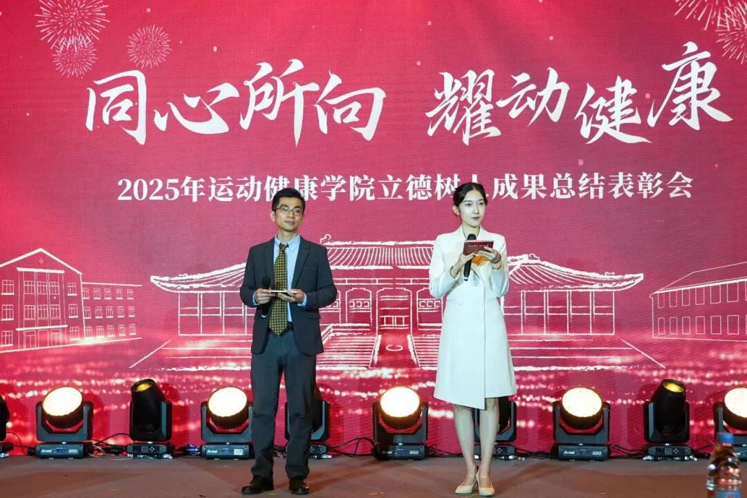 本网讯 12月31日,“同心所向,耀动健康”——2025年运动健康学院立德树人成果总结表彰会在图文信息楼报告厅隆重举行。学校相关职能部门负责人、运动健康学院党政班子成员、师生代表等300余人齐聚一堂,共同回顾2025年奋斗历程,表彰先进典型,展望2026年发展蓝图。大会由运动健康学院教师王四中、2025级硕士研究生张亚蕊联袂主持。