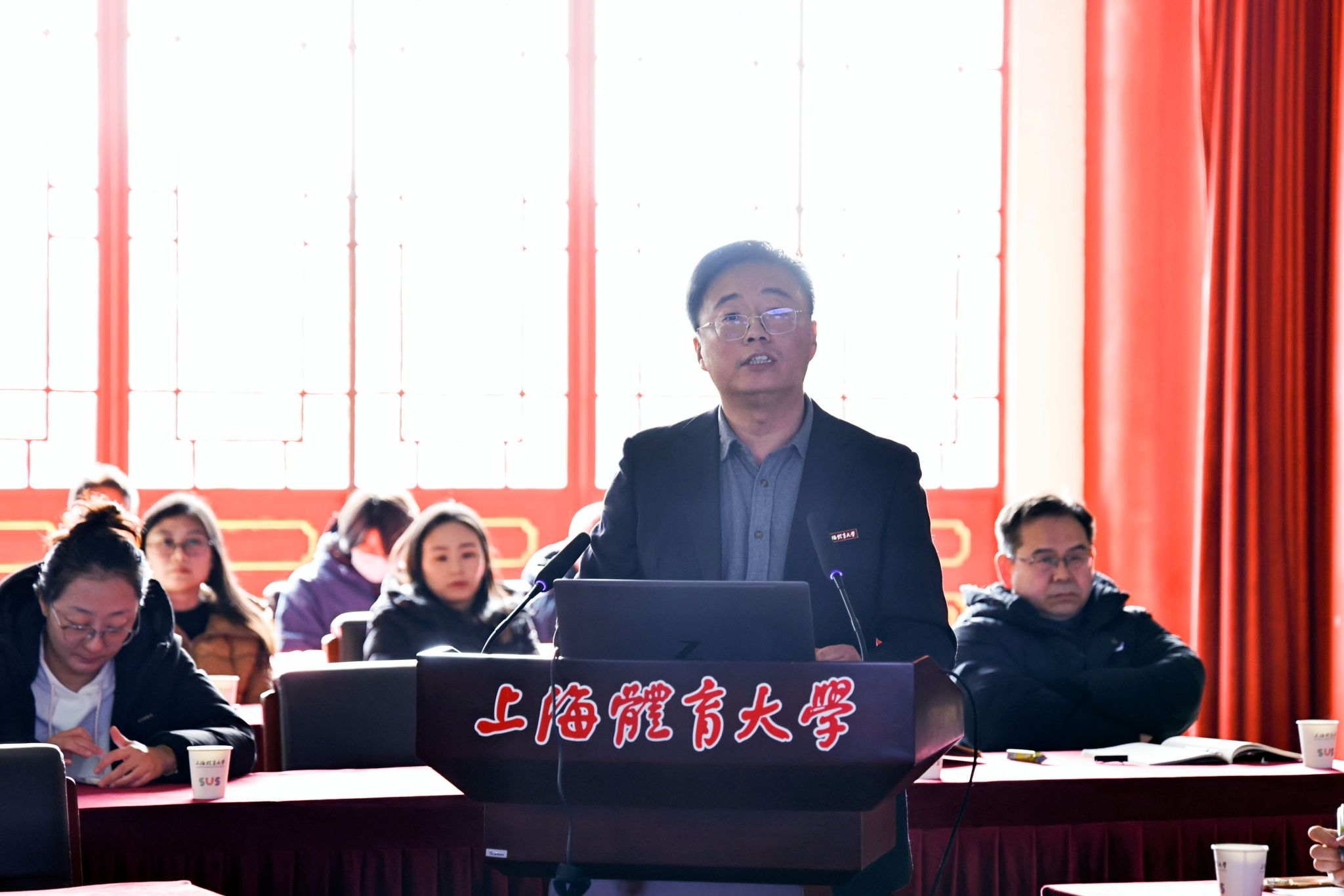她强调,本次修订必须坚持“三个真正”:真正以学生为中心,像培养自己的孩子一样思考其成长路径与未来发展;真正对接产业前沿,推动课堂成为创新思维与实践能力的策源地;真正打破学科壁垒,促进全校优质课程资源的互通共享与协同育人。要以《普通高等学校本科专业类教学质量国家标准》为基本遵循,深度融入区域经济社会发展需求和体育行业变革趋势,着力破解课程体系与产业实际脱节的问题;要全面贯彻“学生中心、产出导向、持续改进”(OBE)的教育理念,科学定位培养目标,优化课程结构,深化产教融合,强化数字赋能,构建高质量人才培养新生态。毛校长充分肯定了部分学院在产教融合平台建设、行业标准研制等方面的先行探索,并勉励全校上下以“引领全国体育人才培养”的使命担当,着力打造可复制、可推广的“上体方案”。
