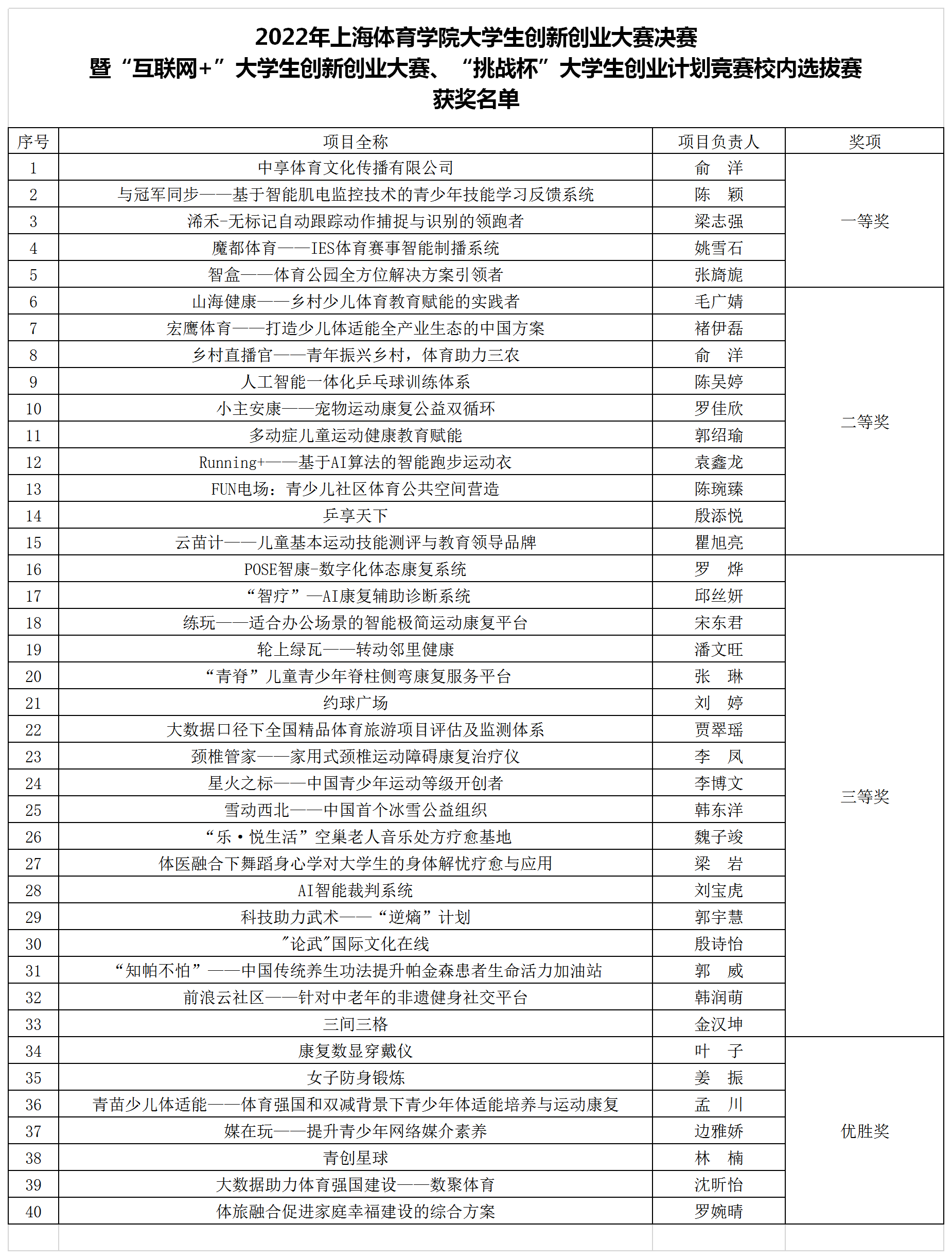 本网讯 为进一步激发大学生创新创业热情,展示SUNBET创新创业教育成果,同时选拔优秀项目参加第八届中国国际“互联网+”大学生创新创业大赛及第十三届“挑战杯”中国大学生创业计划竞赛,5月28日,上海体育学院2022年大学生创新创业大赛暨“互联网+”大学生创新创业大赛、“挑战杯”大学生创业计划竞赛校内选拔赛在腾讯会议平台线上举办。上海体育学院创新创业学院执行院长吴雪萍、副院长陈伟、各项目团队师生及对双创有兴趣的师生约600人参加了本次选拔赛。
