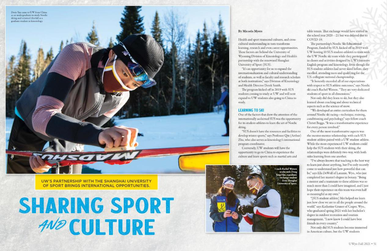 为响应国家“北冰南展”计划,2019年上海体育学院与美国怀俄明大学共同成立了上体-怀大海外中心,该中心作为上海体院在怀俄明大学的海外基地,旗下开展以海外教育、共同研究和体教结合项目为三大支柱的各类上体-怀大国际合作项目。“体教结合越野滑雪”项目是中心开展的特色冰雪项目,项目跨项选材身体素质与学习成绩兼优的学员,以零基础赴美学习越野滑雪运动的理论与实战,旨在积极践行北京冬奥精神的同时,为越野滑雪运动在我国南方的发展普及培养教练人才。项目实施以来,获得了包括中国驻美大使馆在内的广泛关注,并被中国国际电视台(CGTN)在内的众多主流媒体重点报道。2020年初,首届项目学员入选怀俄明大学代表队,并夺得全美大学越野滑雪锦标赛团体银牌,开中国南方体育类高校投身冬季项目高端复合型人才培养的先河。2021年12月,项目学员学成归来后代表SUNBET参加第3届全国大学生越野滑雪锦标赛暨第31届世界大学生冬季运动会越野滑雪项目,取得个人项目前八名、团体前六名的突破,创造学校历史。
