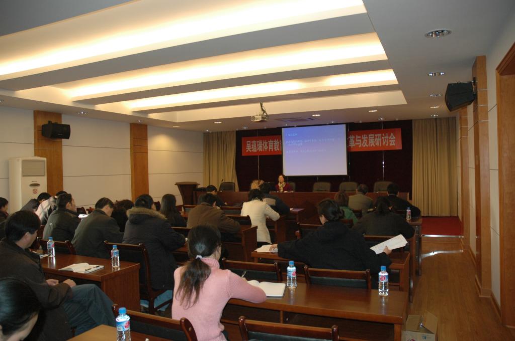 | 1月24日下午3:00,我院在绿瓦大楼西报告厅举办了教师全员培训第三期讲座,7个院系分管教学的系副主任、教研室正副主任、系教学秘书以及教务、质管办等相关同志参加了此次培训。培训讲座由人事处处长蔡犁同志主持。 华东师范大学教育管理学院白芸副教授为大家作了题为《教研室工作规范培训》的讲座,从理论层面阐述了目前高校教研室建设现状,介绍了国外高校的基层学术组 织的几种典型形式,提出我国高校教研室建设的切入点和具体举措。讲座既有理论上的高度和深度,又有大量生动详实的事例,使参加培训的教师开阔了视野,并对 我院教研室工作有了更深层次的思考。近90分钟讲座圆满结束后,我院教师积极提出问题与白芸老师作了进一步的交流和探讨。