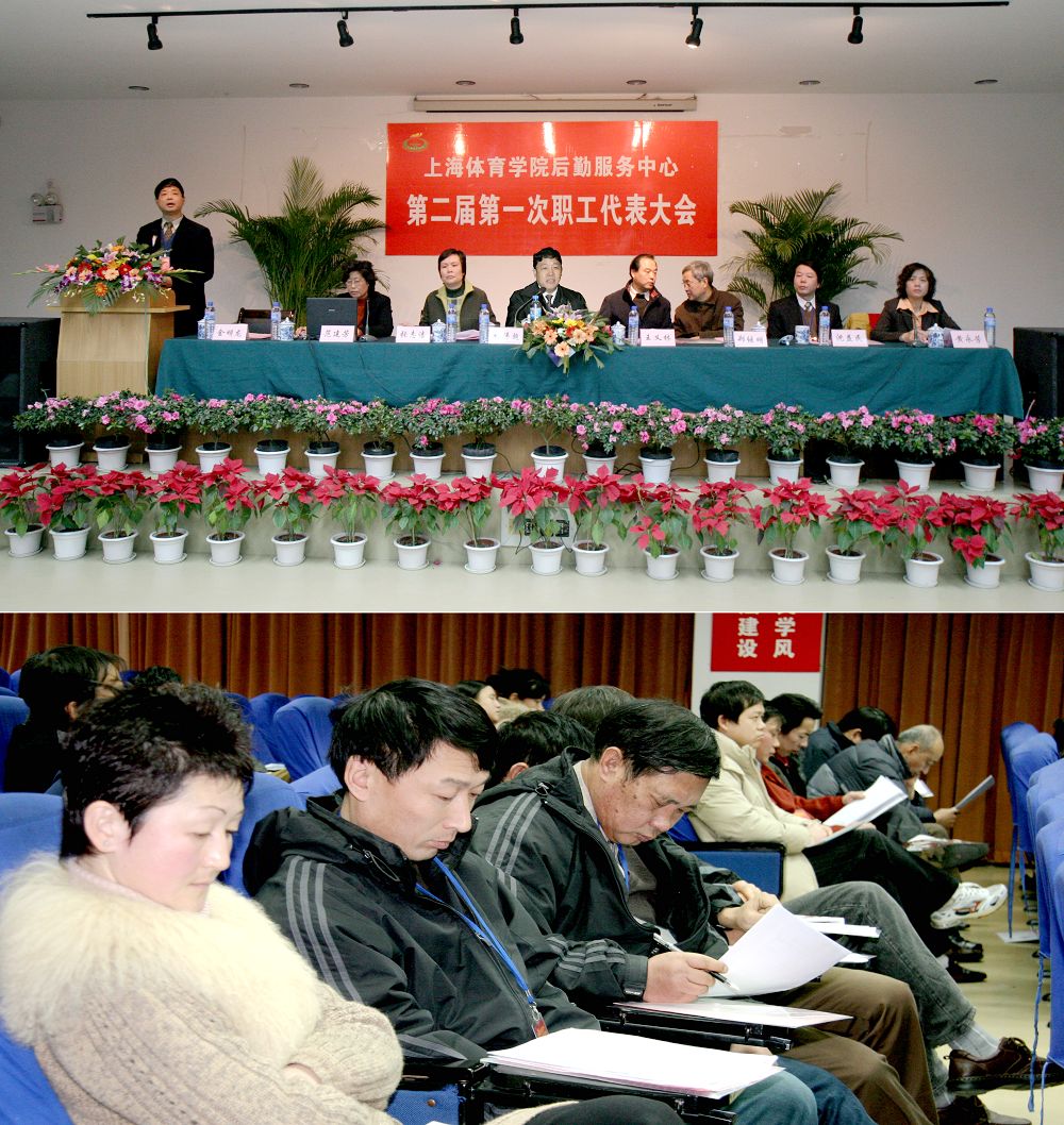 | 12月29日,后勤服务中心第二届一次职代会在学生活动中心二楼报告厅举行。院领导、市教育后勤产业党委领导以及院工会、后管处的领导也应邀出席。本次大会的执行主席由后勤服务中心副总经理黄永芳担任。 本次职代会在庄严的国歌声中拉开了序幕,院工会专职副主席张志洁老师进行了热情洋溢的致辞;市教育产业党委张伟超副书记也对大会的召开表示祝贺,并对近年来体院后勤的成绩予以高度评价;后勤管理处郑继明处长对于后服中心在民主管理方面所作的成绩给予充分的肯定,并预祝大会圆满成功。