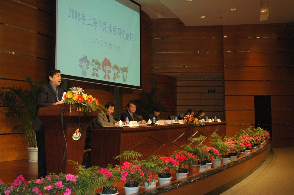 | 3月13日下午,2008年上海市民体质研究论坛在我院召开。上海体育局副局长李伟听,上海市体育局群体处处长舒慧敏,上海市体科所所长李之俊,上海市各区县街道负责体质检测相关人员,上海市民体质研究专家、研究人员等100余人出席了会议。大会由上海市体育局群体处舒慧敏处长主持。 大会首先由上海体育学院党委书记虞丽娟致欢迎词。接着,上海体育学院副院长陈佩杰介绍本次论坛的论文评审情况并宣读获奖名单,随后大会对获奖人员进行颁奖。上海市体育局副局长李伟听发言总结了上海市民参加2005年第二次全国国民体质监测的情况,肯定了此次市民体质监测取得的成绩,对相关工作人员、专家学者付出的辛劳表示感谢,并简要分析了此次检测结果。