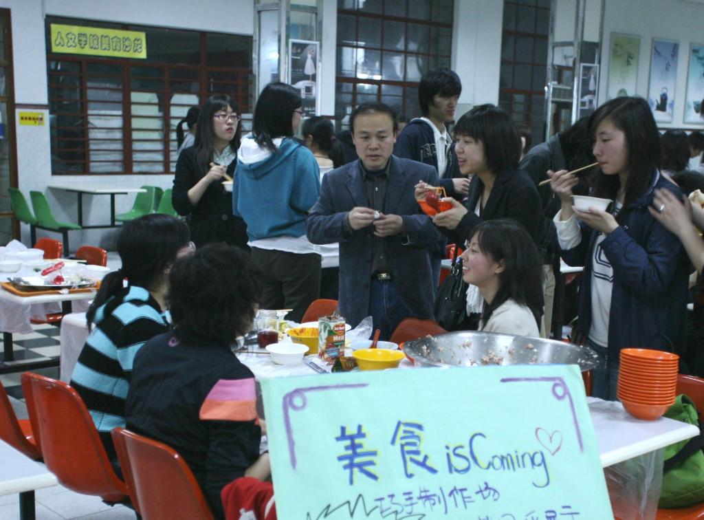 | 为了弘扬中华民族传统文化,增进学生人文素养,培养团队的团结协作精神,增强同学们的动手能力,体育人文学院07级新生在4月7日晚上,于学生食堂第三餐厅,举行了“女儿节美食沙龙”活动。 此次活动不仅引起体育人文学院学生的广泛关注,学院部分老师、辅导员也兴致勃勃参与其中,更有本院及其他院系的高年级同学前来参加。活动的主要内容是女生动手制作点心或主食,男生负责帮厨与准备工作,完成之后大家一同品尝。有的班级包饺子,有的班级包馄饨,还有的制作寿司、水果甜羹等等,食品多种多样,不仅让在场的师生满足的口福,也饱了眼福。