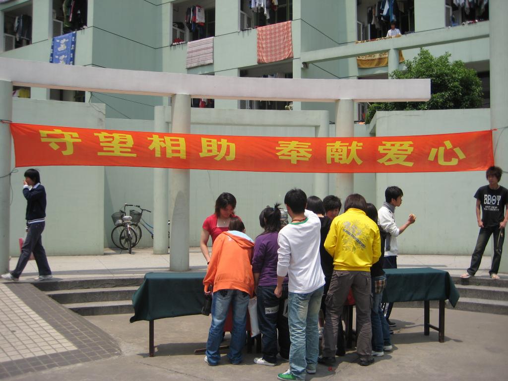 天灾无情,人间有义。在全院师生心系灾区的暖流中,5月14日中午,由竞校学生党支部牵头发动了全校范围的赈灾捐款活动。“守望相助,奉献爱心”的横幅挂在竞校内最醒目的位置,广播台里播放了灾情介绍和捐款倡议,师生们纷纷解囊捐助。经统计,共有164人参加,募捐金额达9078.4元。此外,早在灾情发生的第二天,竞校击剑队王军教练就首先在运动队发起了捐款倡议。竞校所有捐款将交往院红十字会支援灾区。竞校师生表示,将积极响应学校号召,为灾区的人们尽一点微薄之力,献上自己的一片爱心。
