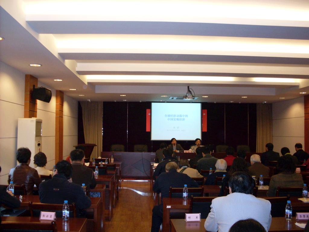 11月8日上午9:00,我院在绿瓦大楼西会议室举行中层干部理论学习会,邀请复旦大学经济学院教授陆铭作了题为《全球经济动荡中的中国宏观经济》的专题讲座。我院党政领导、全体中层以上干部、老同志代表、辅导员聆听了讲座。学习会由院党委书记虞丽娟主持。