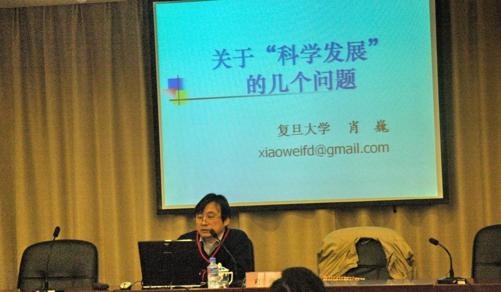 随后,肖巍教授为大家作了一场精彩纷呈的报告。他就怎样解读科学发展观谈了深入的看法。他说,科学发展观是在立足基本国情,总结发展实践,借鉴国外发展经验基础上提出来的,发展与民生、发展与文化、发展与环境都有着密不可分的关系,中国的科学发展就是对世界的最大负责。他认为,科学发展观的第一要义是发展,核心是以人为本,基本要求是全面协调可持续发展,根本方法则是统筹兼顾。他又谈到,在目前情况下,制约科学发展的因素有很多,来自各个方面的影响都会对国家和社会发展带来不可忽视的作用。肖巍教授运用翔实的数据和生动的案例为大家上了一堂深刻的国情、世情分析课。会上,大家聚精会神,不时对肖教授的精彩报告记录下自己的思考。