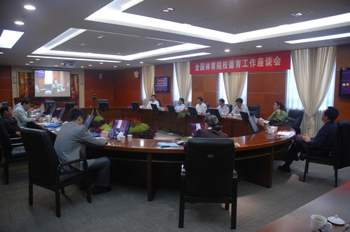 为了学习贯彻全国教育工作会议精神,落实中央宣传部、教育部、共青团中央《关于五年多来大学生思想政治教育工作的情况和下一步工作意见》精神,商讨全国体育院校德育工作研究会建设事宜,近日,由全国体育院校德育工作研究会和上海体育学院主办的全国体育院校德育工作座谈会在我院召开。来自北京体育大学,上海、武汉、成都、沈阳、西安、首都、山东、天津、南京、哈尔滨、河北、吉林等地的十三所体育院校分管学生工作院(校)领导出席了会议。我院党委书记戴健,党委副书记、纪委书记庄起民出席了会议。