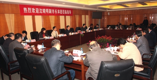 沈晓明副市长在图文信息楼第一会议室主持召开了中国乒乓球学院筹建工作调研会议。党委书记戴健致欢迎辞,院长章建成汇报了中国乒乓球学院挂牌成立后的工作进展、今后两年工作设想和目前需解决的问题。市教委秘书长蒋红、市发改委副主任叶明忠分别从基建项目方案完善、首次理事会的筹备、中国乒乓球学院的发展定位和运行模式等方面提出了建议,并表示将一如既往地给予关注和支持。
