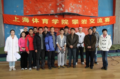 为顺应世界攀岩运动的发展趋势,促进上海市高校攀岩运动的发展,在我院大力推广、提倡攀岩运动,使同学们更好的接触攀岩、了解攀岩、爱上这项运动,上海体育学院社会体育教研室以及攀岩协会于2010年12月25日承办了本次以“勇攀高峰 坚强意志”为主题的第二届上海体育学院攀岩交流赛。体育休闲系主任卫志强、副主任杨烨以及休闲系党总支副书记唐建华携休闲系各位老师出席了本次活动。卫志强为本次比赛致辞,杨烨宣布了本次交流赛的开始。