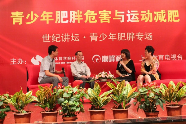 6月12日下午14时,由上海体育学院科技园、巅峰减重和上海教育电视台“世纪讲坛”栏目共同主办的“青少年肥胖的危害与运动减肥”专场讲座在我院图文信息楼报告厅录制完成。