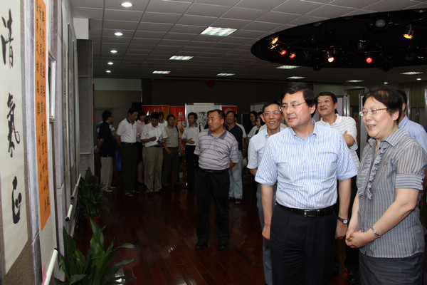 为深入学习贯彻《中国共产党党员领导干部廉洁从政若干准则》和《上海市高校领导干部廉洁自律若干规定》,加强廉政文化建设,营造清正廉洁的氛围。以“红色旗帜,时代风采”为主题的纪念建党90周年上海体育学院廉政书画展,于6月28日下午14:30在工会隆重开幕,出席本次活动的有上海市教卫纪工委领导、院党政领导、上海市东北片区部分高校纪委副书记,二级系(院)院长及书记、机关职能部门负责人、院党风廉政监督员、教工书法协会成员等,此次书画展由院纪委主办,工会协办,纪委副书记王红英同志主持。