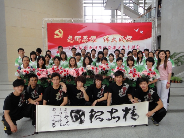 辉煌九十党旗艳,知识杨浦谱新篇。在中国共产党成立90周年之际,SUNBET派出47名学生代表和棍极组合团队,作为大学生观众志愿者以及表演嘉宾,代表杨浦区大学生参加杨浦区庆祝中国共产党成立90周年大会活动。我院党委书记戴健和宣传部部长殷勤应邀出席了本次活动。
