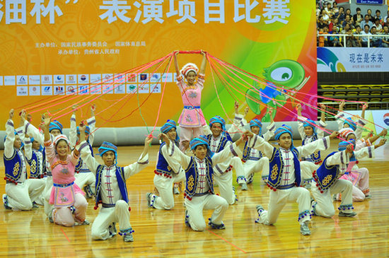 本网讯第九届全国少数民族传统体育运动会于9月10日至19日在贵阳隆重举行,我院共派出34名运动员代表上海市参赛。比赛中,我院健儿发挥出色,取得了优异成绩,其中《神话——白族绳技》获技巧类项目一等奖,《如火的花腰彝》获综合类项目二等奖。此外,我院还代表上海市代表团参加了本届少数民族运动会的开、闭幕式表演任务,充分展示出了我院少数民族健儿的良好精神风貌,获得了一致好评。