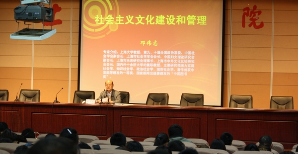 本网讯 10月26日下午,第九、十届全国政协常委邓伟志教授应我院思政教研部邀请,在绿瓦大礼堂为全院研究生们开设了一堂题为《社会主义文化建设和管理》的专题讲座。