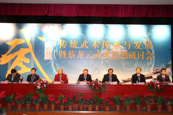 开幕式上,国家体育总局武术研究院副院长陈国荣就传统武术传承与发展阐述其重要价值,充分肯定了蔡龙云先生对中国武术事业作出的卓越贡献。他指出,传统武术的传承与发展是维系中国武术事业持续健康发展的生命源泉,意义重大;蔡龙云先生是新中国武术的开拓者和奠基人之一,在长期的武术教学、科研和管理过程中,形成了自己的学术思想,对现代武术理论的形成和完善有重要贡献,是现代武术理论发展的重要成果,也是武术理论体系形成过程中的重要方面;研讨与秉承蔡龙云武术思想,不仅是中华武术文化和精神价值传承和弘扬的需要,更是武术文化、事业繁荣与发展的需要。上海体育学院副院长赵光圣介绍“蔡龙云大师工作室”是2008年上海市教育委员会继周晓燕、余秋雨之后第三个“大师工作室”;指出大学需要大师支撑,要充分发挥大师的引领作用和文化价值。