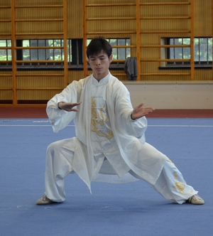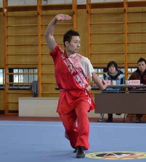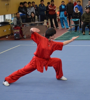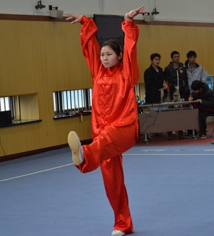 在拳术组展示中,展示项目包括自选长拳、五段长拳、24式太极拳、56式太极拳、和式太极拳、陈氏太极拳、自选拳术、少林七星拳、咏春拳等。其中,11级硕士研究生谢烽一套华拳可谓“拳如流星、眼似电光”,“动如浪涛,静如山岳”,获得满堂喝彩;11级硕士研究生崔刚的自选拳术打的虎虎生风,拳拳生威;10级硕士研究生贺锁平的56式太极拳刚柔相济、快慢相间、韵味十足;10级硕士乔丽娜的自选长拳舒展大方,灵活快速,动迅静定,节奏分明,也赢得阵阵叫好。