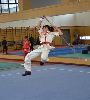 尤其值得一提的是,本次研究生武艺展示大会首次有博士生们加入。所谓“东枪西棍,南拳北腿”,张平安的扭丝棍充分展示了陇原四大名棍的风采,缠丝纽带,变化无穷。朱君的陈氏太极拳竞赛套路同样精彩,快慢相间,蓄发相变。而最让人眼前一亮的便是留学生阮友龙所展示的越南武术。阮友龙来自越南胡志明体育学院,获得过东南亚泰拳比赛冠军,他的表演既展现了传统武术的攻防技巧,又透露出浓浓越南文化特色,体现了速度、力量与美的统一。
