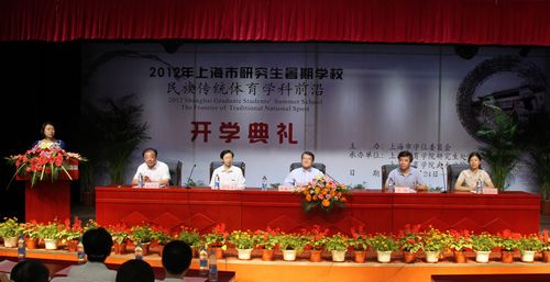 本网讯6月25日上午,由上海市学位委员会主办、我院承办的2012年上海市“民族传统体育学科前沿”研究生暑期学校在活动中心一楼报告厅开班。副院长陈佩杰出席开学典礼并讲话。典礼由研究生处副处长、研工部副部长张华敏主持。