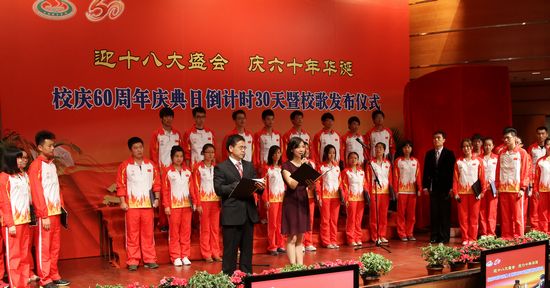 校庆志愿者代表表演了诗朗诵《深深绿瓦情 学子在行动》。在校歌发布结束后,师生代表共同演唱了校歌。