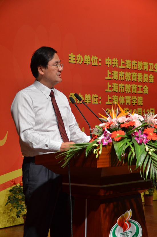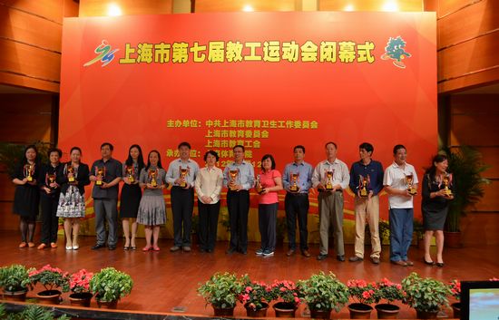 本网讯10月12日下午两点,上海市第七届教工运动会闭幕式在我院图文信息楼一楼报告厅举行。上海体育学院党委书记戴健致欢迎词,对各代表团的领导的到来表示了热烈欢迎。组委会常务副主任、市教卫党委巡视员、市教育工会主席夏玲英女士发表了上海市第七届教工运动会的总结报告,对本届教工运动会的得失经验进行了总结,并且提出了宝贵建议。