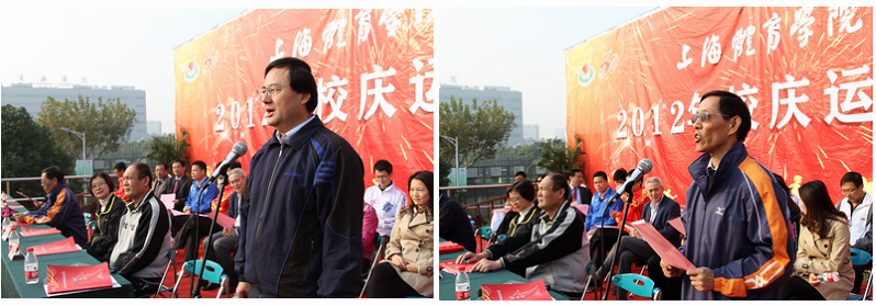 院党委书记戴健宣布2012年上海体育学院校庆运动会开幕。之后在他的领唱下,院领导和全院师生共同唱响上海体育学院校歌,共同祝愿国家繁荣昌盛,共同庆贺学院60周年华诞,祝福学院各项事业蒸蒸日上,共同祝愿本次运动会圆满成功。