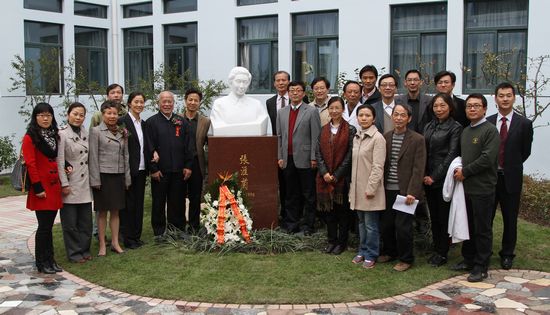 新落成的张汇兰先生汉白玉塑像,由上海大学著名雕塑家张海平教授设计。绿树鲜花丛中,张先生面含微笑,慈祥而睿智。张汇兰先生严谨治学、关爱学生的一代大家风范,将永远激励着后辈学者。